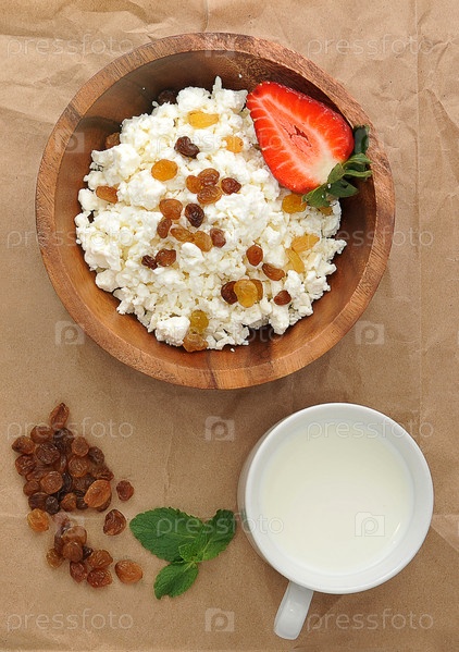 Творог с изюмом и клубникой