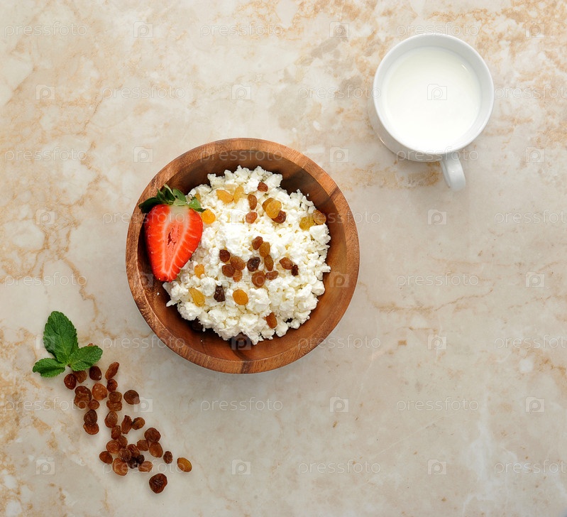 Творог с изюмом и клубникой