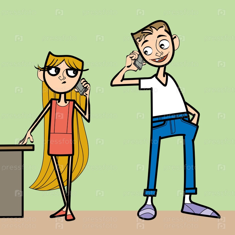 Девочка и мальчик с телефонами