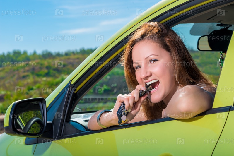 Красивая молодая женщина в машине