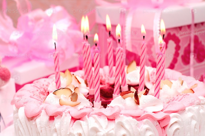 Торт со свечам и подарки