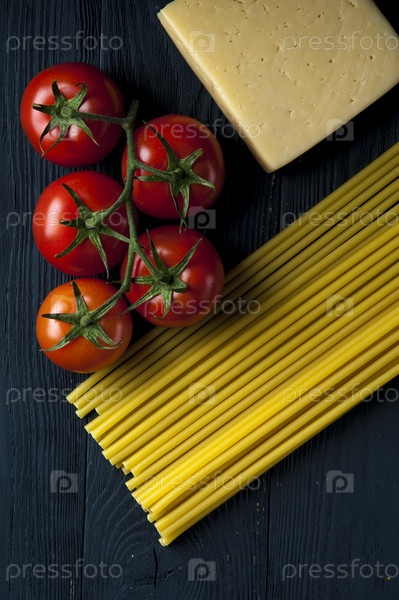 Сырые макароны и помидоры