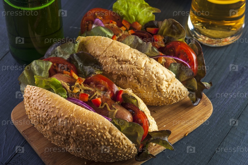 Хот-доги с колбасками и овощами