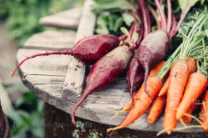 Свежесобранные свекла и морковь