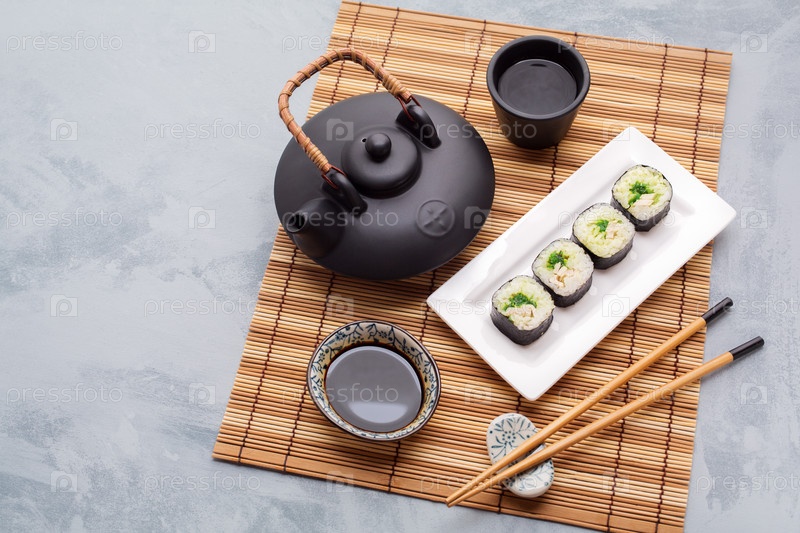 Традиционный азиатский набор чая и суши