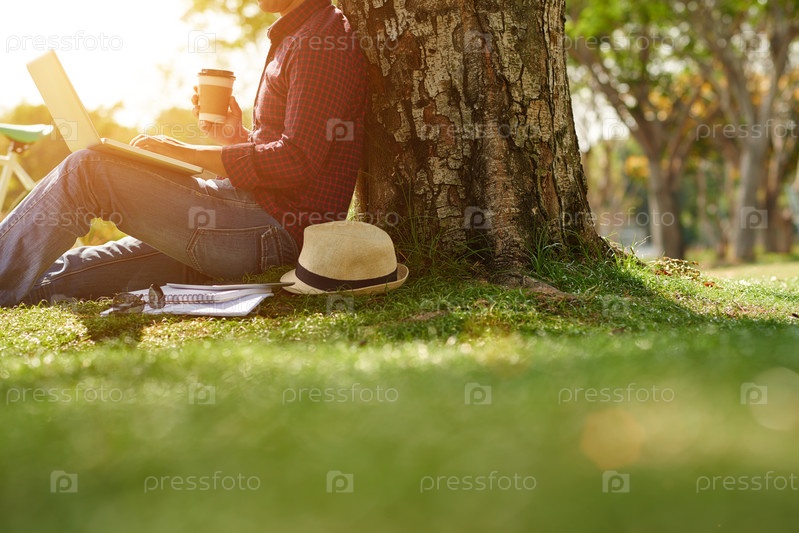 Под деревом с ноутбуком