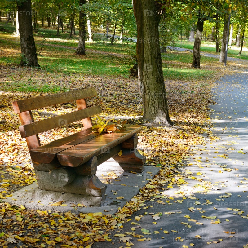 Деревянная скамейка в Осеннем парке