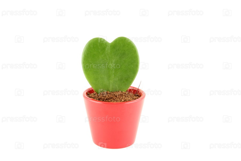 Зеленое растение в горшке, растущее в форме сердца, изолированное на белом фоне