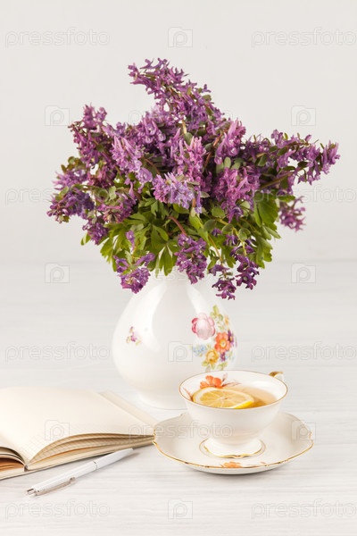 Чай с лимоном и Букет сирени