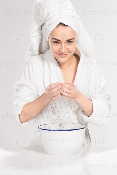 Женщина моет лицо