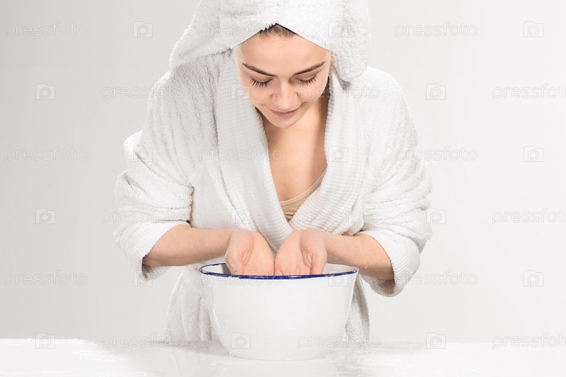Женщина моет лицо