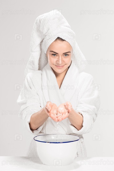 Женщина моет лицо