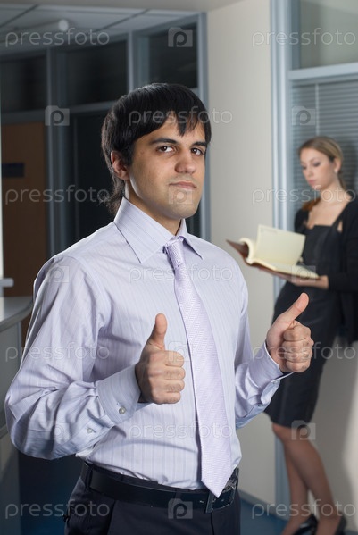 Успешный бизнесмен показывает большой палец