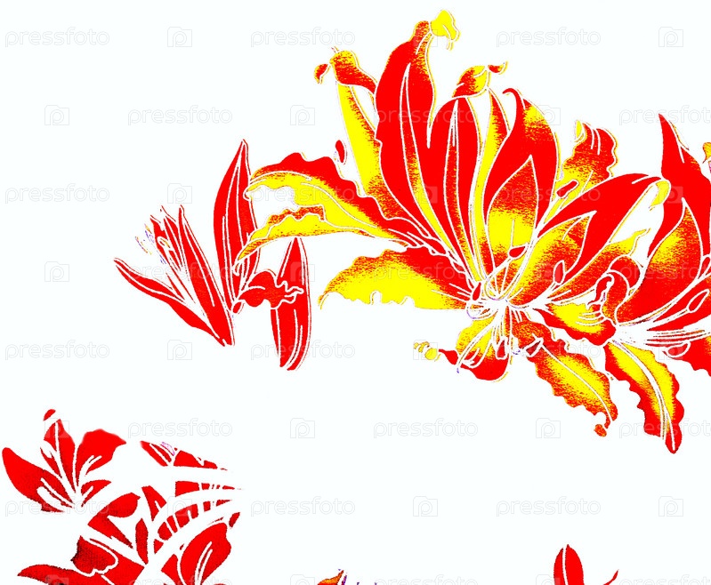 Желтые и красные цветы на белом фоне