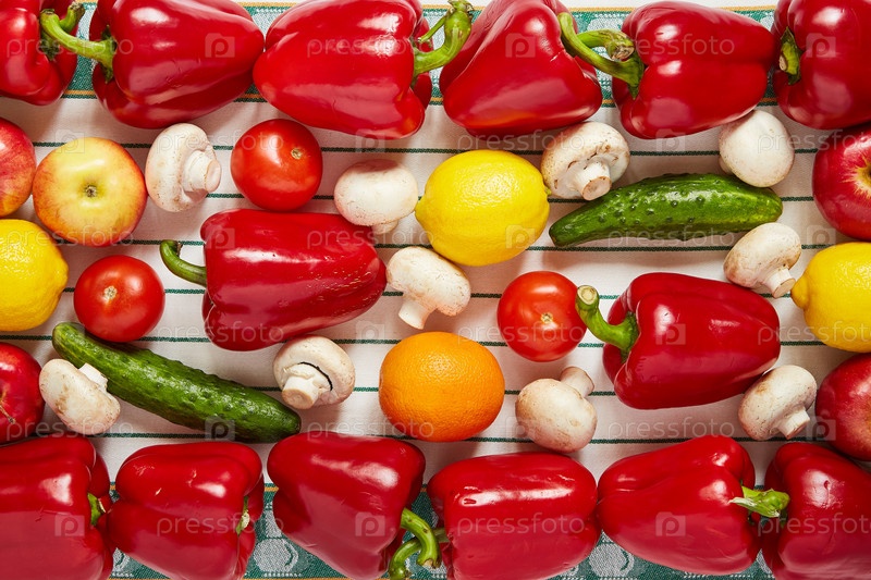 Спелые овощи, фрукты и грибы