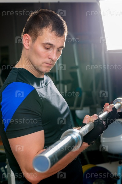 30-летний мужчина держит штангу