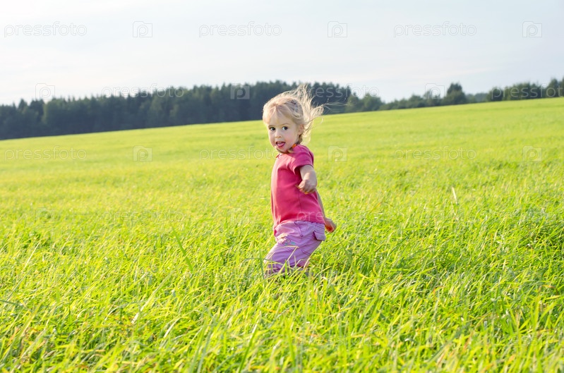 Маленькая девочка бежит по полю