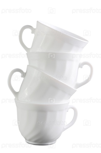 Куча белых чашек, изолированных на белом фоне
