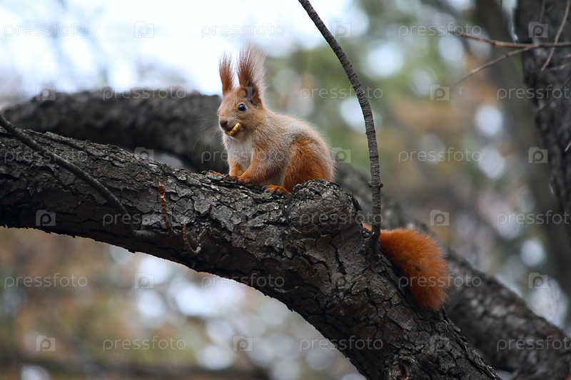 Белка ест печенье на дереве