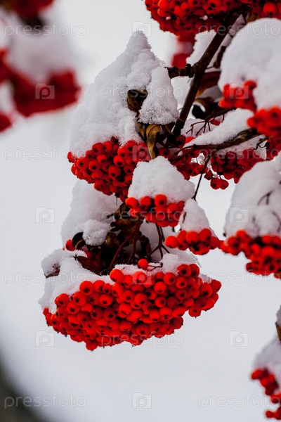 Ягоды рябины под снегом