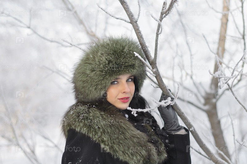 Молодая женщина в зимней одежде в парке
