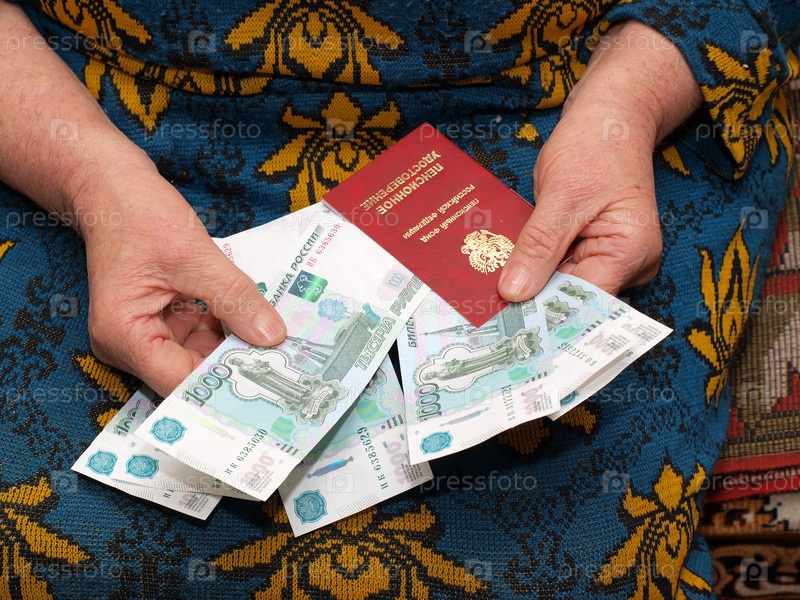 Пенсионное удостоверение и деньги в женских руках