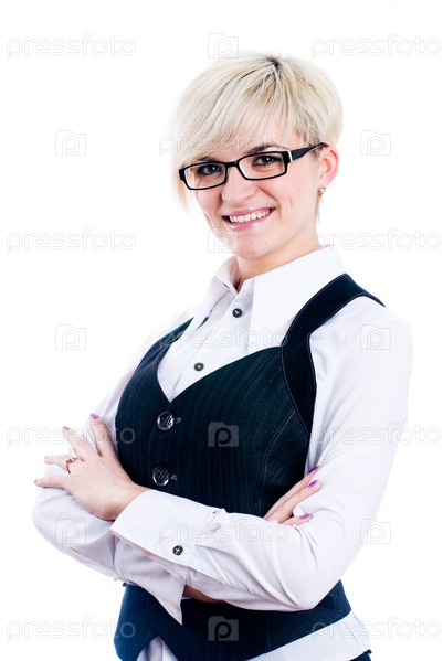 Деловая женщина в очках на светлом фоне