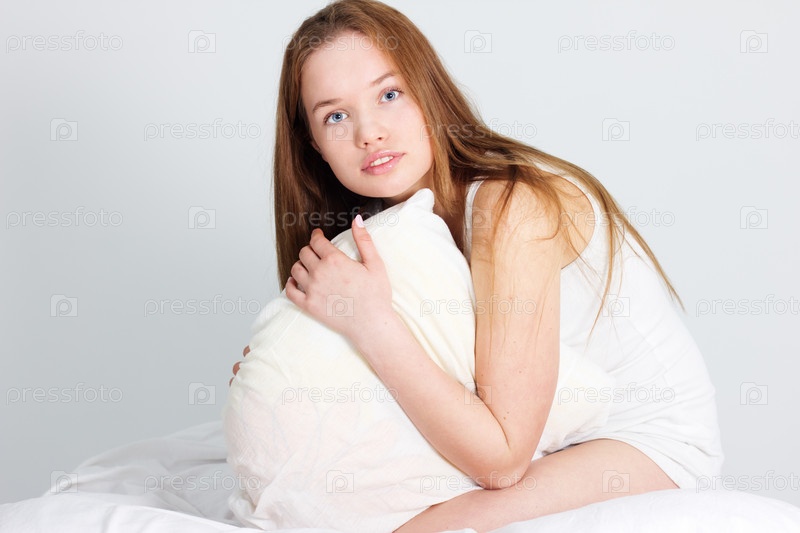 Портрет молодой красивой женщины на кровати