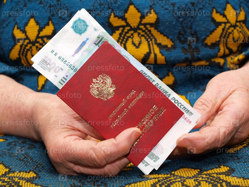 Пенсионное удостоверение и деньги в руках пожилой женщины