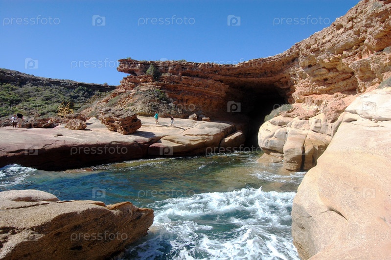 Пещера и скалв, синий океан, Южная Австралия