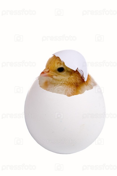 Цыпленок в яичной скорлупе, изолированный на белом фоне