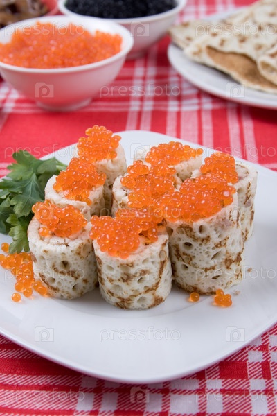 Блинчики с красной икрой