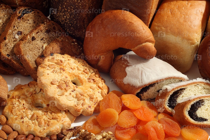 Натюрморт из хлеба и фруктов