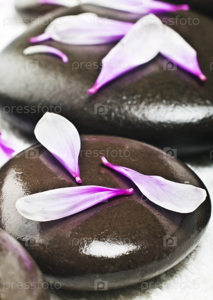 Спа-камни с цветами на белом фоне