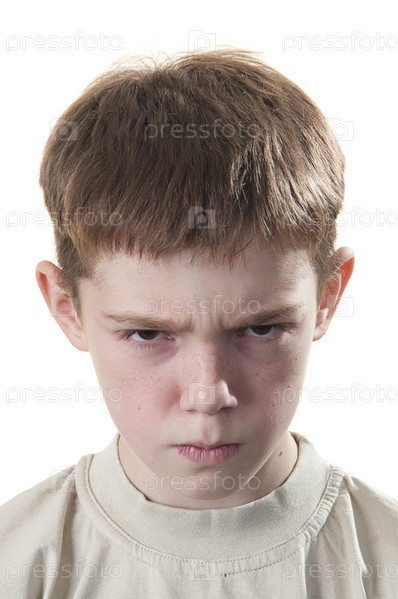 Портрет злого мальчика на белом фоне