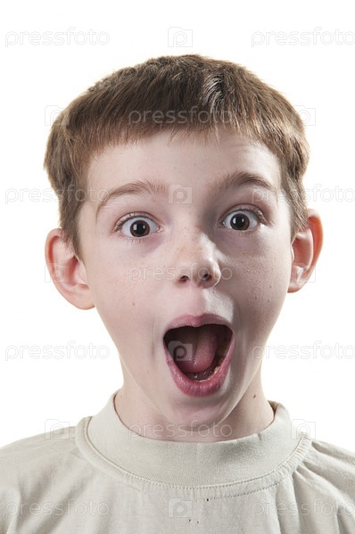 Портрет удивленного мальчика на белом фоне