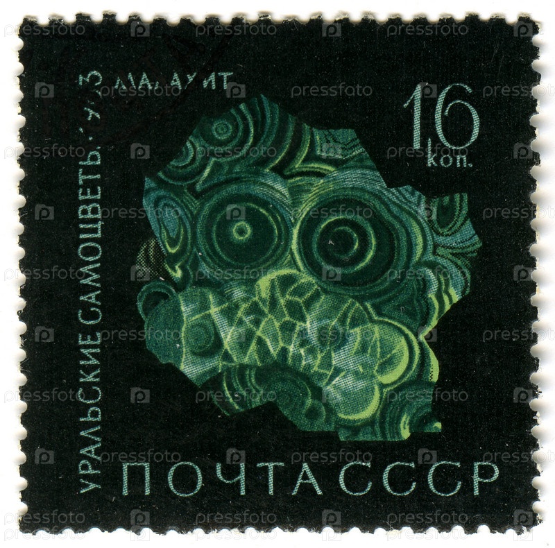Почтовая марка СССР с изображением уральского природного камня - малахит