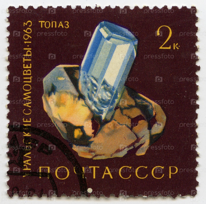 Почтовая марка СССР с изображением уральского природного камня - топаз