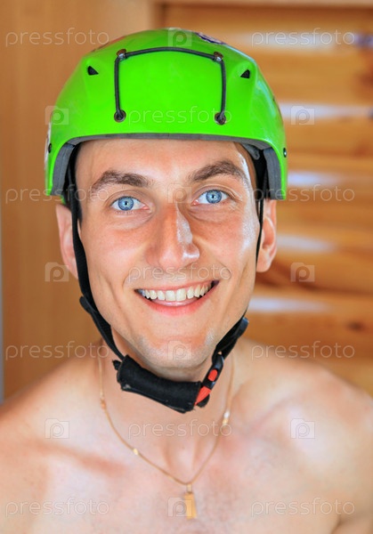 Портрет молодого мужчины в защитном шлеме