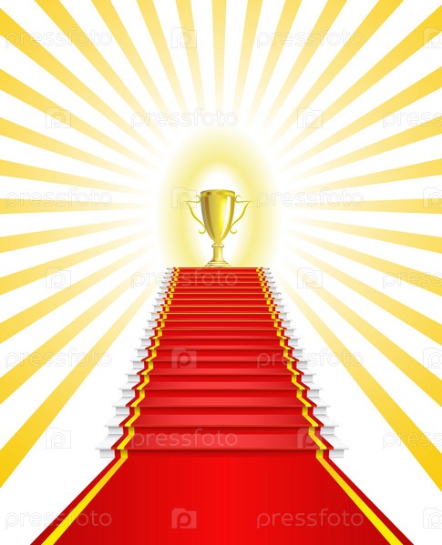 Золотой кубок на красной ковровой дорожке