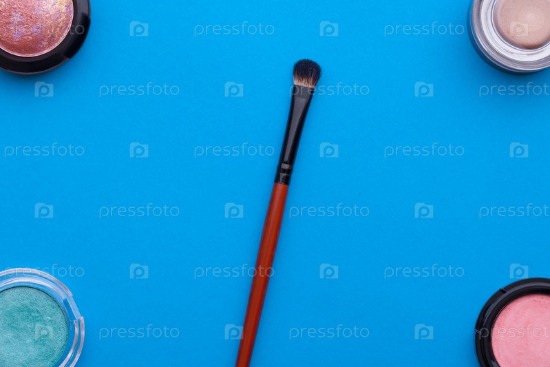 косметическая теневая косметика на синем фоне
