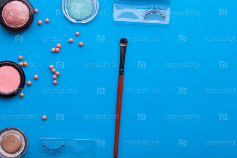 косметическая теневая косметика на синем фоне