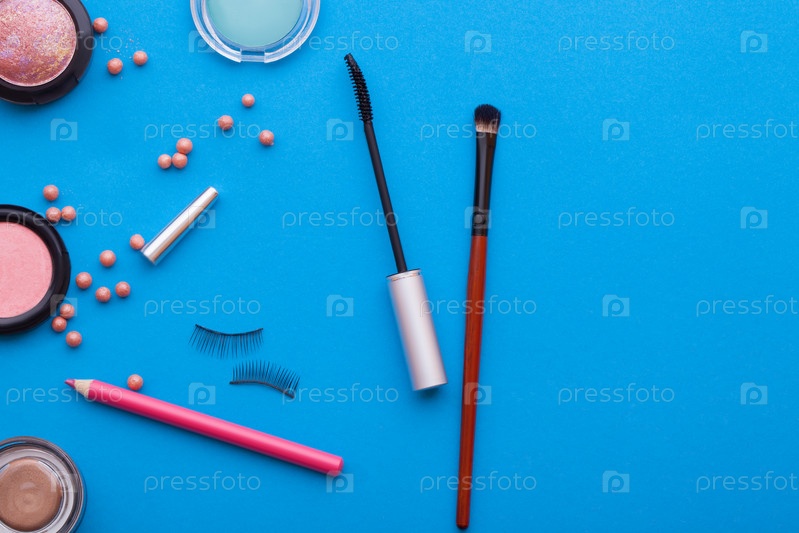 косметическая теневая косметика на синем фоне