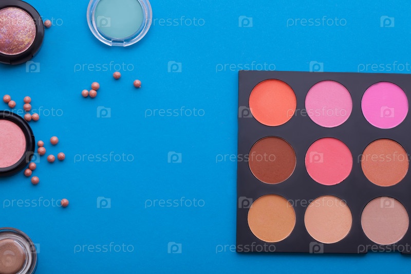 косметическая теневая косметика на синем фоне