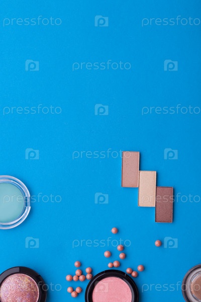 косметическая теневая косметика на синем фоне