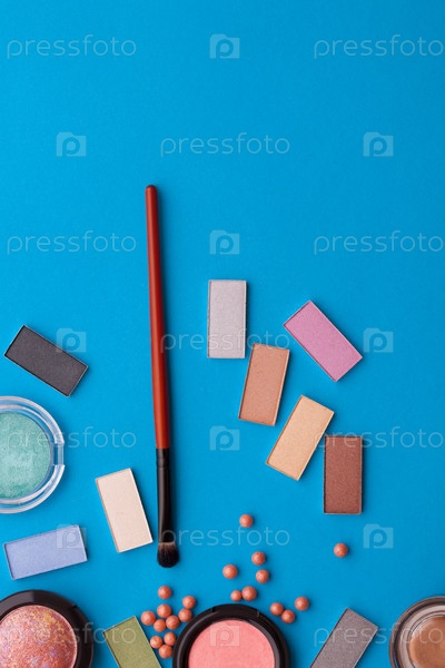 косметическая теневая косметика на синем фоне