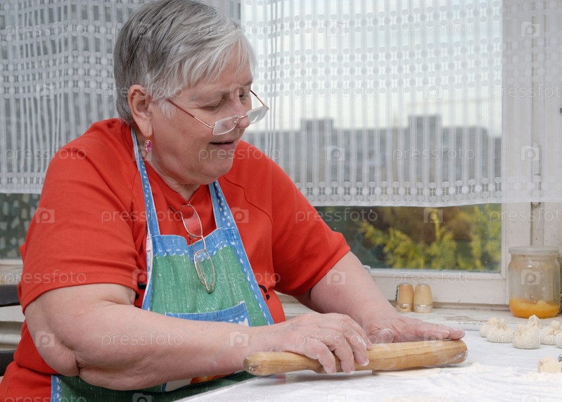 Женщина месит тесто