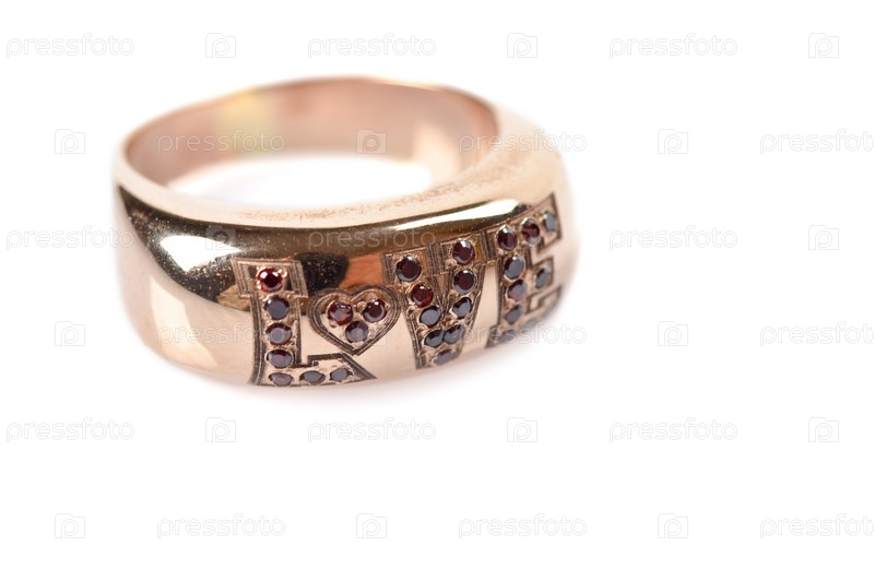 Золотое кольцо с надписью 'love'. изолировано на белом фоне