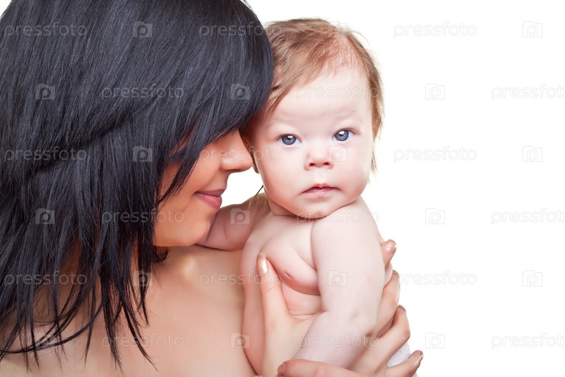 Мать с ребенком на светлом фоне