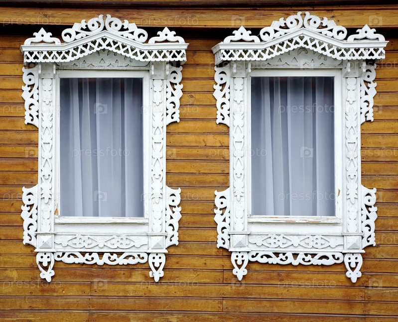 Два деревенских окна с деревянными образцовыми кошельками